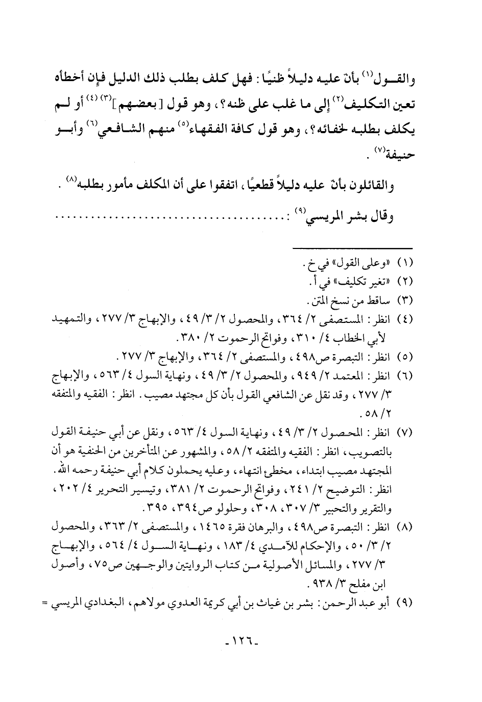 (¬8) انظر: التبصرة ص 498، والبرهان فقرة 1465، والمستصفى 2/ 363، والمحصول 2/ 3/ 50، والإحكام للآمدي 4/ 183، ونهاية السول 4/ 564، والإبهاج 3/ 277، والمسائل الأصولية من كتاب الروايتين والوجهين ص 75، وأصول ابن مفلح 3/ 938.