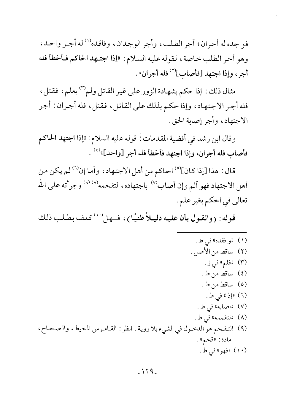 وقال ابن رشد في أقضية المقدمات: قوله عليه السلام: "إذا اجتهد الحاكم فأصاب فله أجران، وإذا اجتهد فأخطأ فله أجر [واحد] " (¬4).