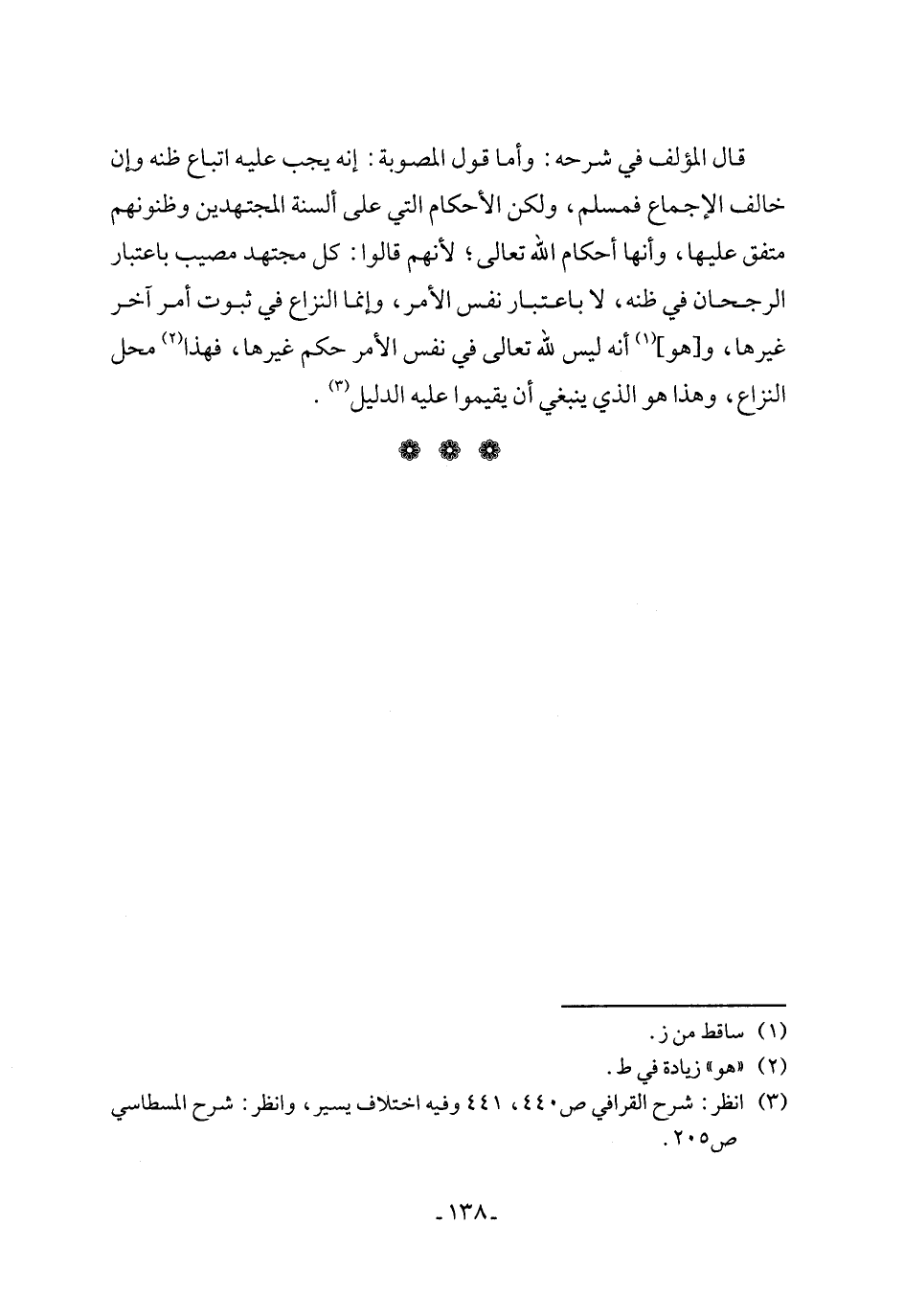(¬3) انظر: شرح القرافي ص 440، 441 وفيه اختلاف يسير، وانظر: شرح المسطاسي ص 205.