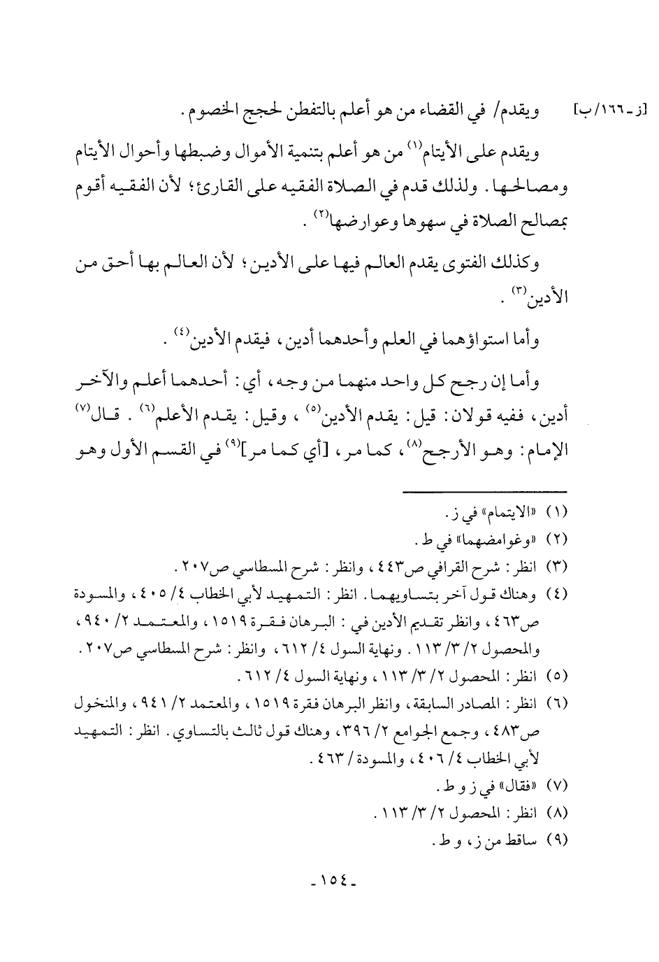ويقدم على الأيتام (¬1) من هو أعلم بتنمية الأموال وضبطها وأحوال الأيتام ومصالحها. ولذلك قدم في الصلاة الفقيه على القارئ؛ لأن الفقيه أقوم بمصالح الصلاة في سهوها وعوارضها (¬2).