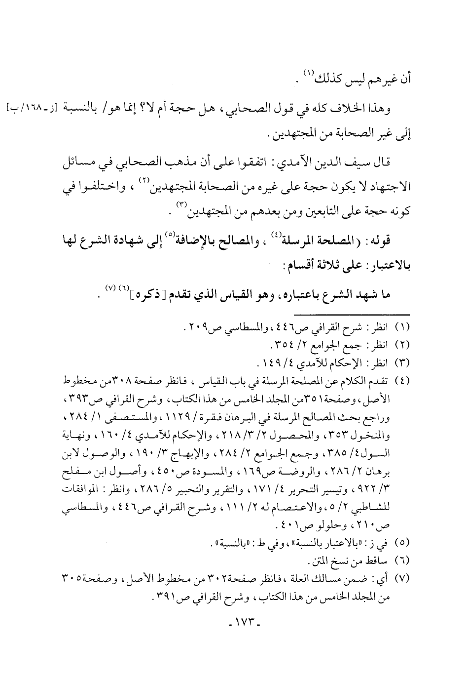 (¬7) أي: ضمن مسالك العلة، فانظر صفحة 302 من مخطوط الأصل، وصفحة 305 من المجلد الخامس من هذا الكتاب، وشرح القرافي ص 391.