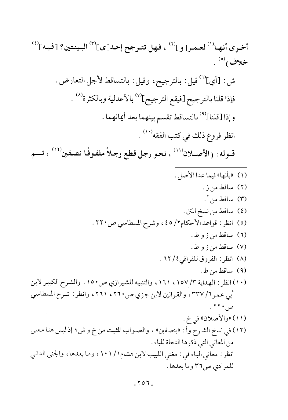 قوله: (الأصلان (¬11)، نحو رجل قطع رجلاً ملفوفًا نصفين (¬12)، ثم