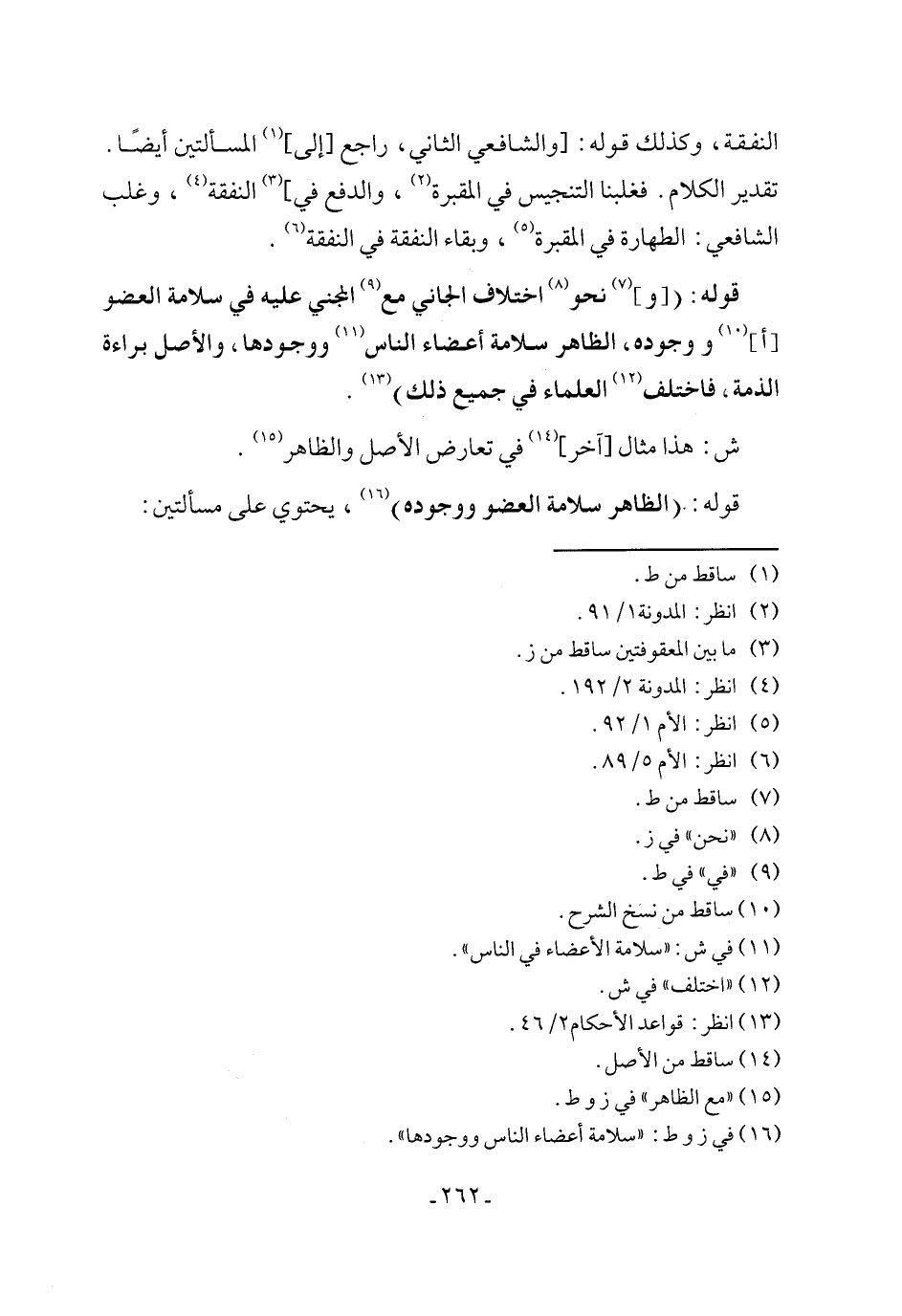 قوله: ([و] (¬7) نحو (¬8) اختلاف الجاني مع (¬9) المجني عليه في سلامة العضو [أ] (¬10) ووجوده، الظاهر سلامة أعضاء الناس (¬11) ووجودها، والأصل براءة الذمة، فاختلف (¬12) العلماء في جميع ذلك) (¬13).