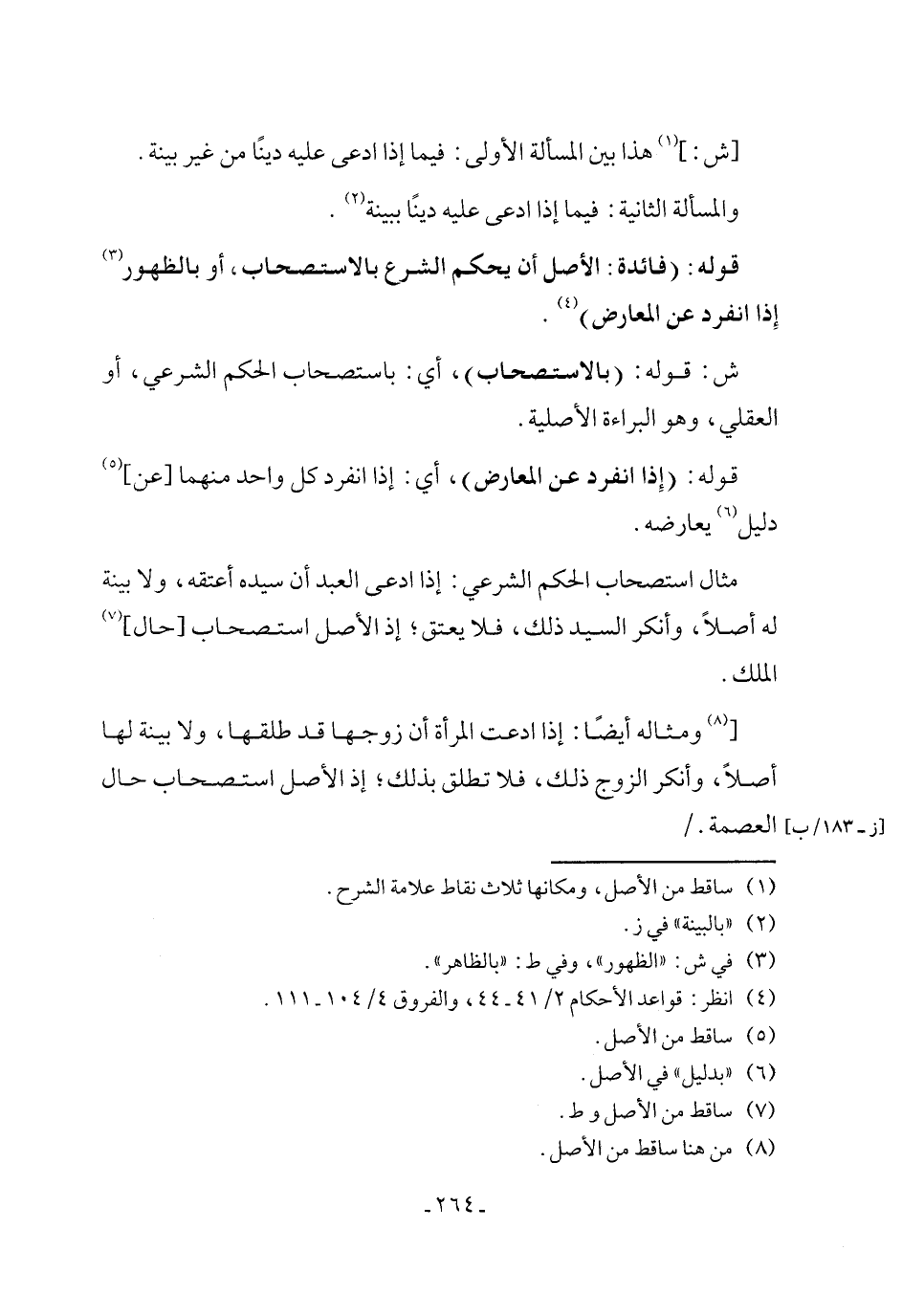 قوله: (فائدة: الأصل أن يحكم الشرع بالاستصحاب، أو بالظهور (¬3) إِذا انفرد عن المعارض) (¬4).