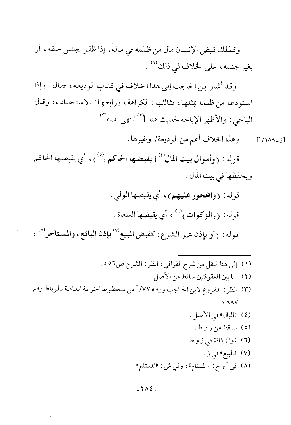 (¬3) انظر: الفروع لابن الحاجب ورقة 77/ أمن مخطوط الخزانة العامة بالرباط رقم 887 د.