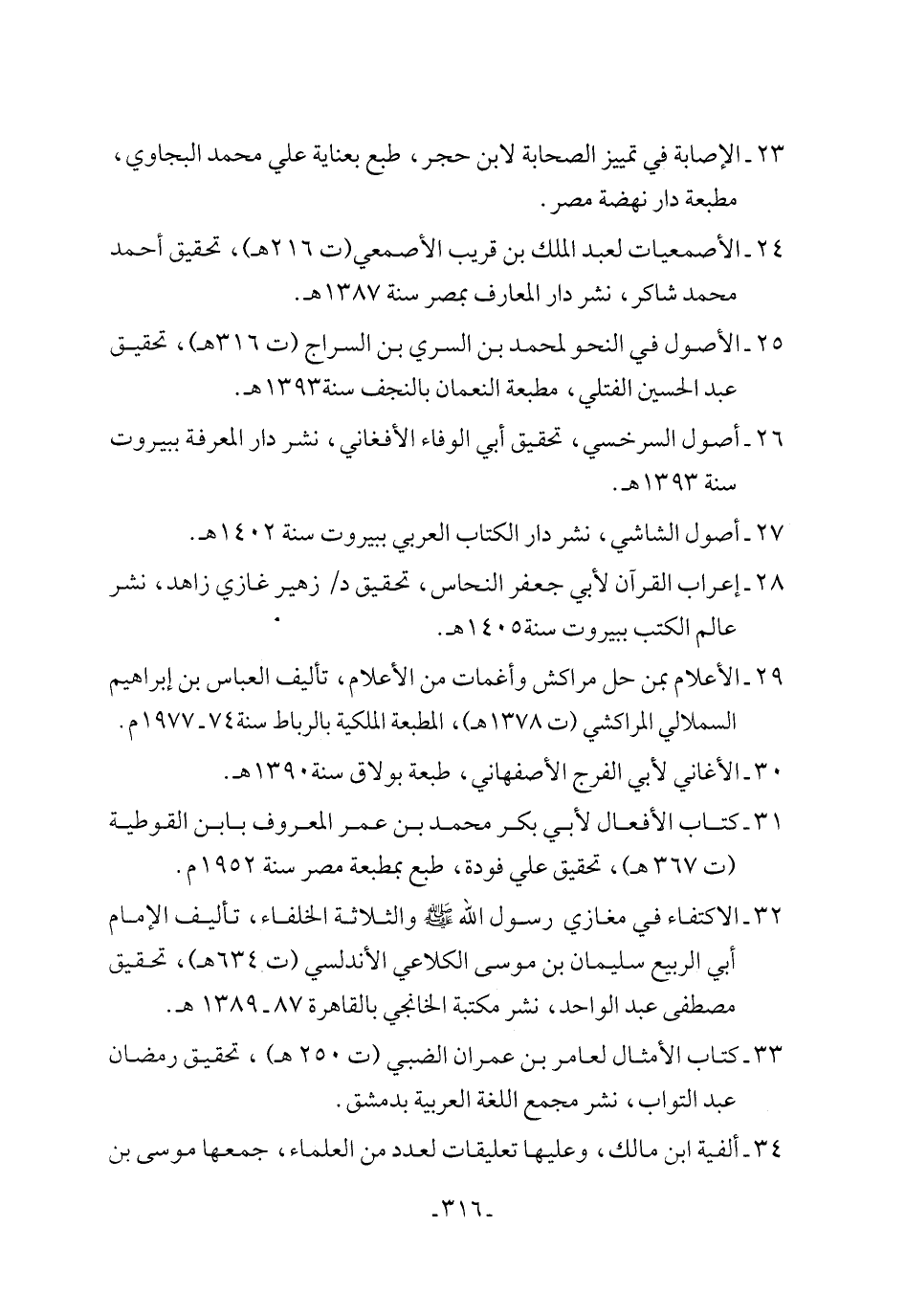 25 - الأصول في النحو لمحمد بن السري بن السراج (ت 316 هـ) تحقيق عبد الحسين الفتلي، مطبعة النعمان بالنجف سنة 1393 هـ.