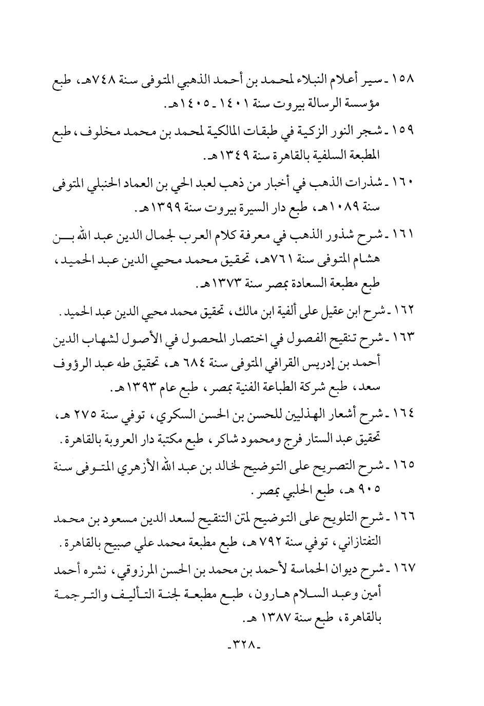 161 - شرح شذور الذهب في معرفة كلام العرب لجمال الدين عبد الله بن هشام المتوفى سنة 761 هـ، تحقيق محمد محيي الدين عبد الحميد، طبع مطبعة السعادة بمصر سنة 1373 هـ.
