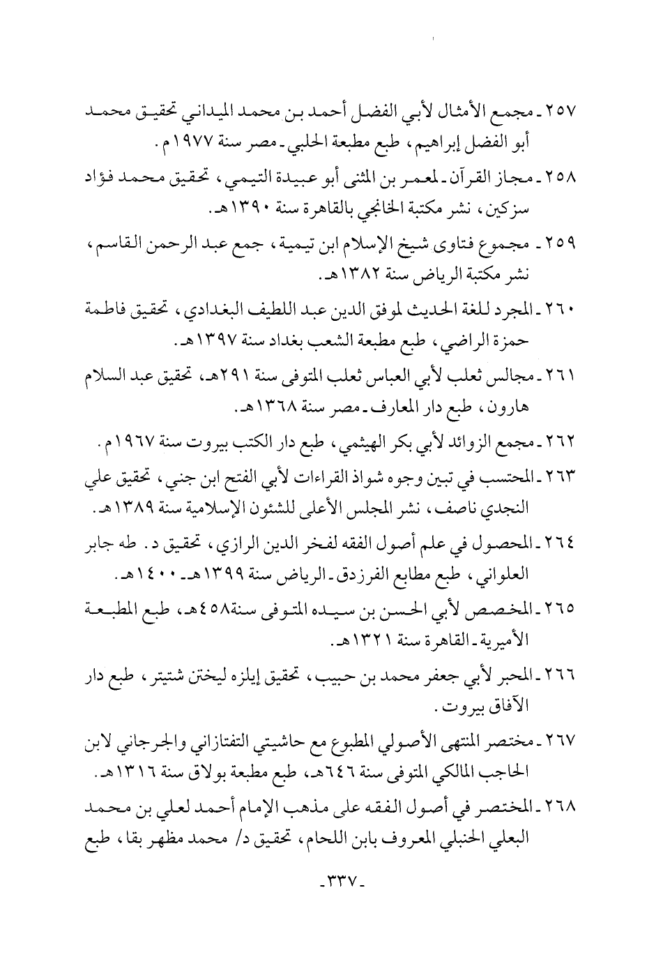 261 - مجالس ثعلب لأبي العباس ثعلب المتوفى سنة 291 هـ، تحقيق عبد السلام هارون، طبع دار المعارف - مصر سنة 1368 هـ.