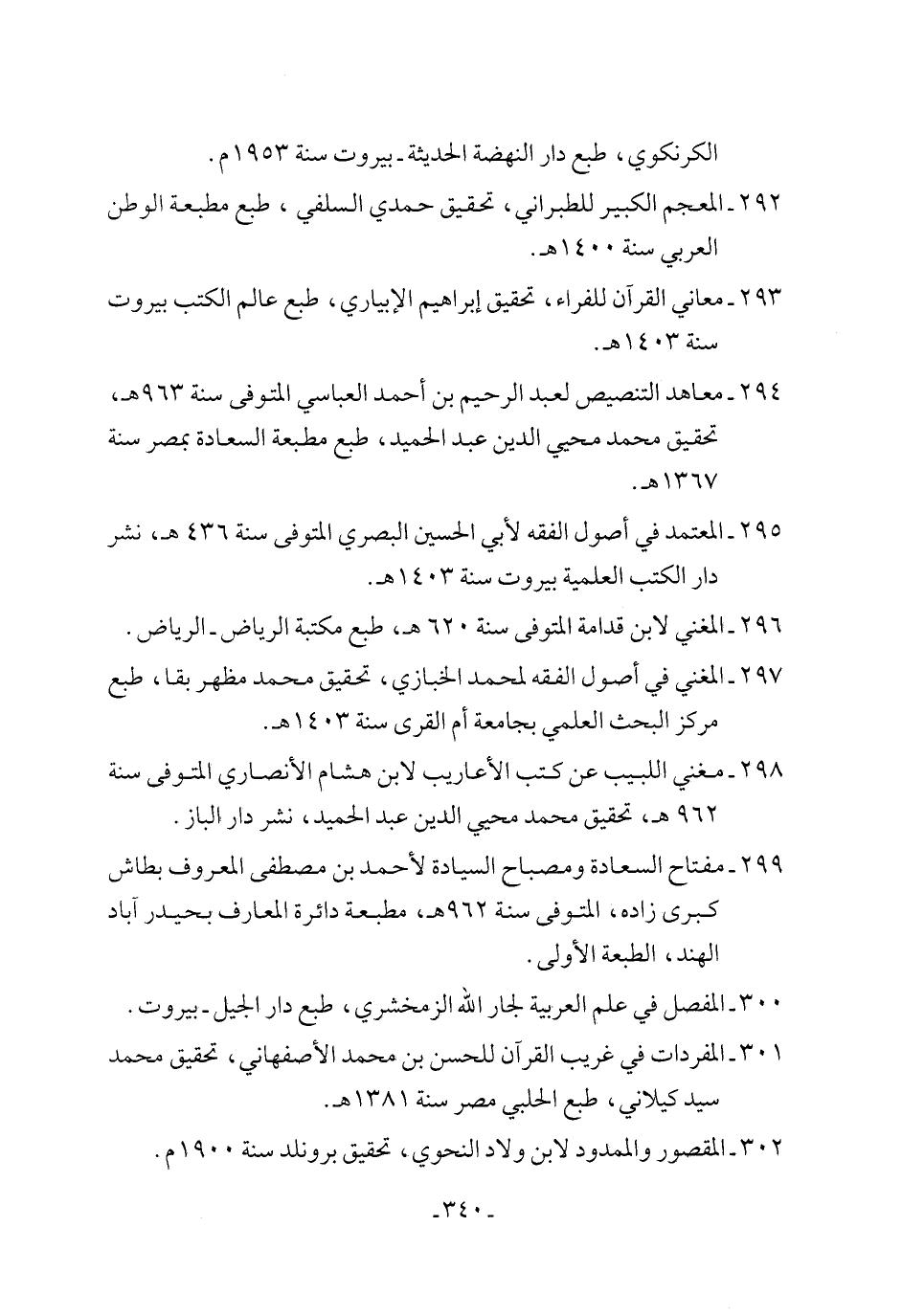 300 - المفصل في علم العربية لجار الله الزمخشري، طبع دار الجيل - بيروت.