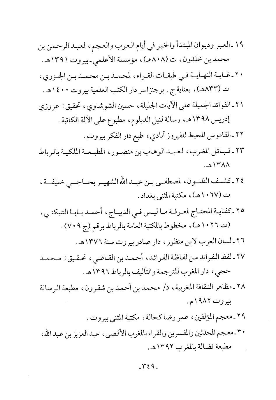 30 - معجم المحدثين والمفسرين والقراء بالمغرب الأقصى، عبد العزيز بن عبد الله، مطبعة فضالة بالمغرب 1392 هـ.