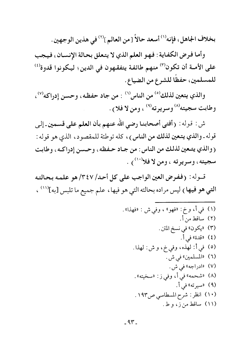 وأما فرض الكفاية: فهو العلم الذي لا يتعلق بحالة الإِنسان، فيجب على الأمة أن تكون (¬3) منهم طائفة يتفقهون في الدين؛ ليكونوا قدوة (¬4) للمسلمين، حفظًا للشرع من الضياع.