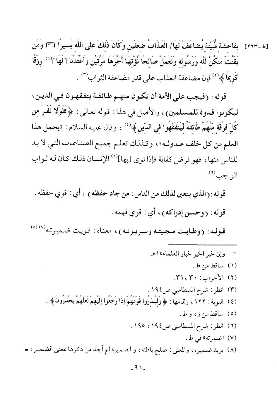 (¬4) التوبة: 122، وتمامها: {وَلِيُنْذِرُوا قَوْمَهُمْ إِذَا رَجَعُوا إِلَيْهِمْ لَعَلَّهُمْ يَحْذَرُونَ}.