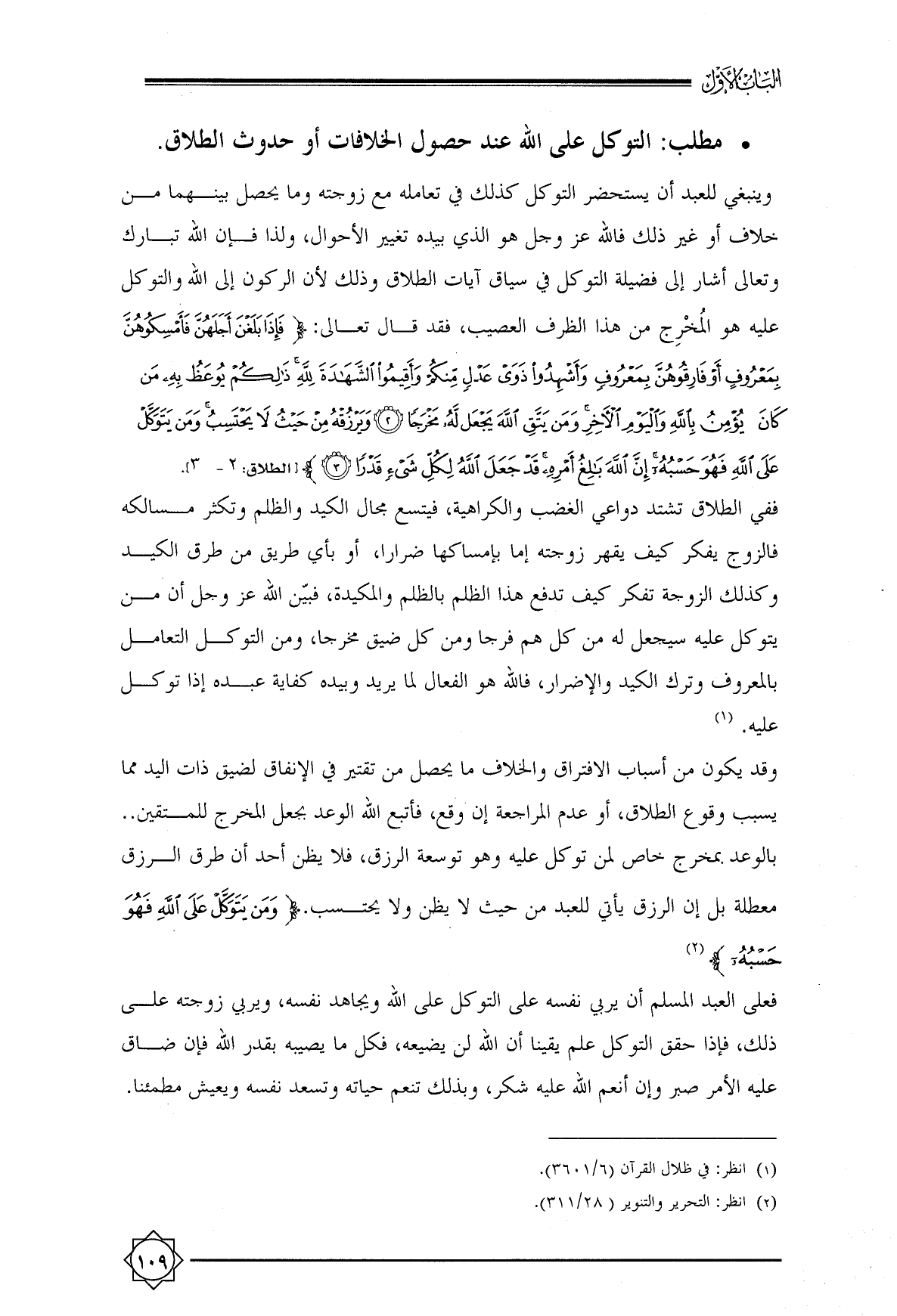 • مطلب: التوكل على الله عند حصول الخلافات أو حدوث الطلاق.