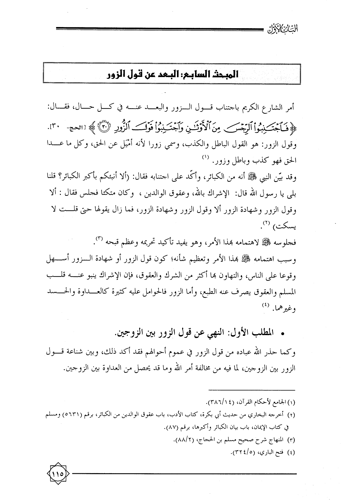 المبحث السابع: البعد عن قول الزور