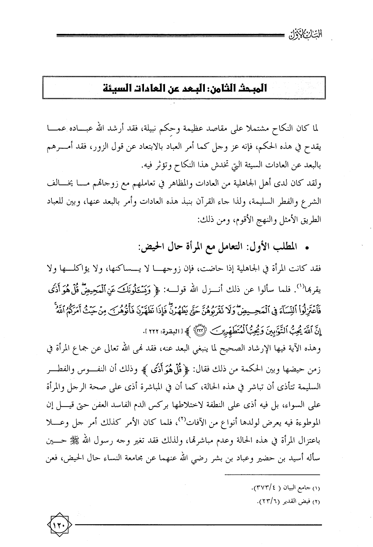 • المطلب الأول: التعامل مع المرأة حال الحيض: