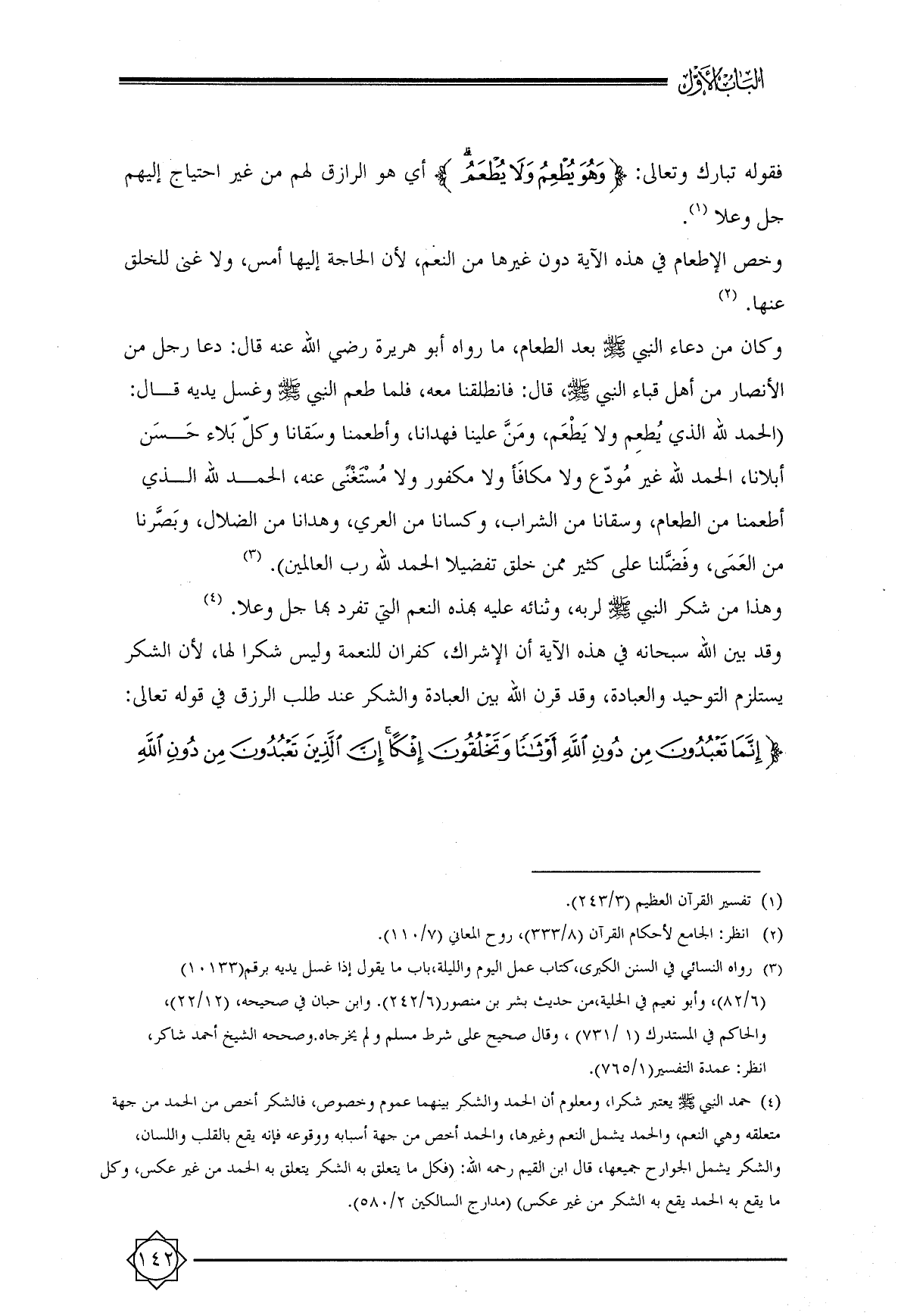 وهذا من شكر النبي - صلى الله عليه وسلم - لربه, وثنائه عليه بهذه النعم التي تفرد بها جل وعلا. (¬٤)