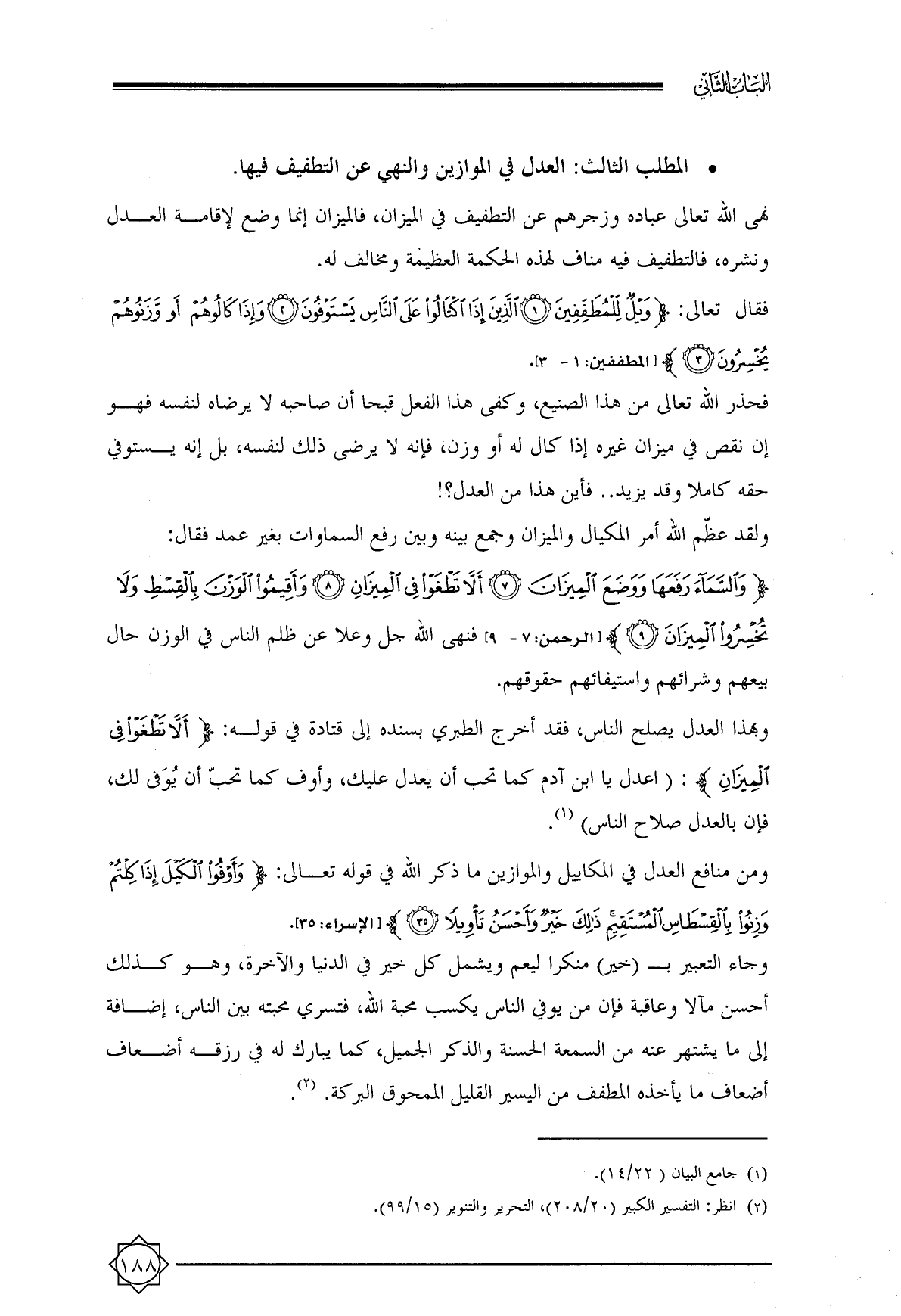 • المطلب الثالث: العدل في الموازين والنهي عن التطفيف فيها.