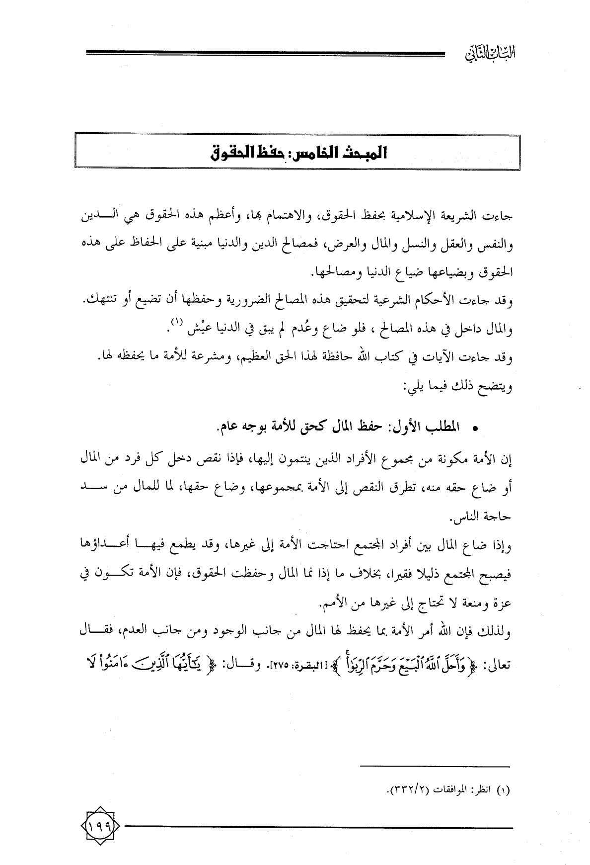 • المطلب الأول: حفظ المال كحق للأمة بوجه عام.