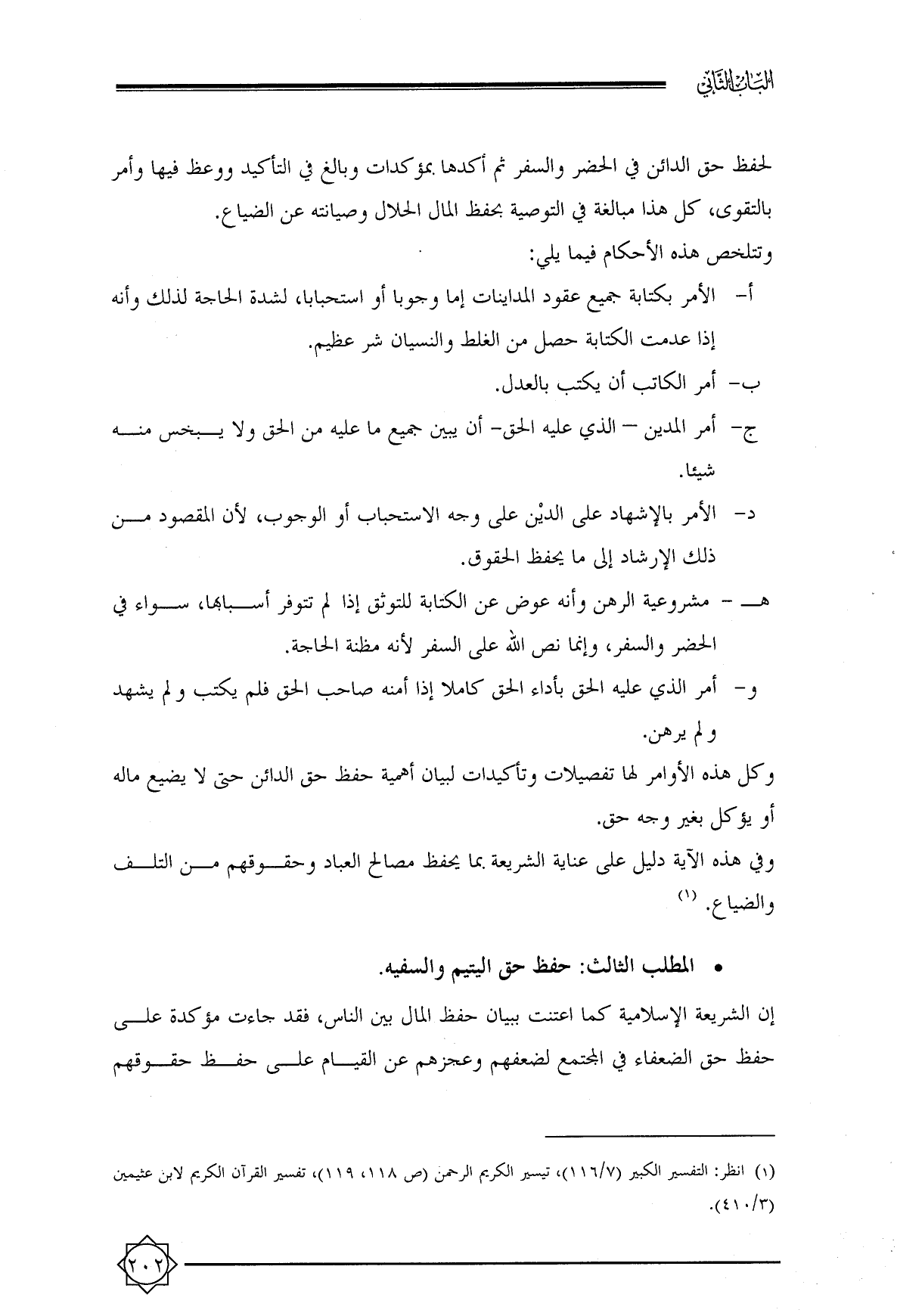 وكل هذه الأوامر لها تفصيلات وتأكيدات لبيان أهمية حفظ حق الدائن حتى لا يضيع ماله أو يؤكل بغير وجه حق.