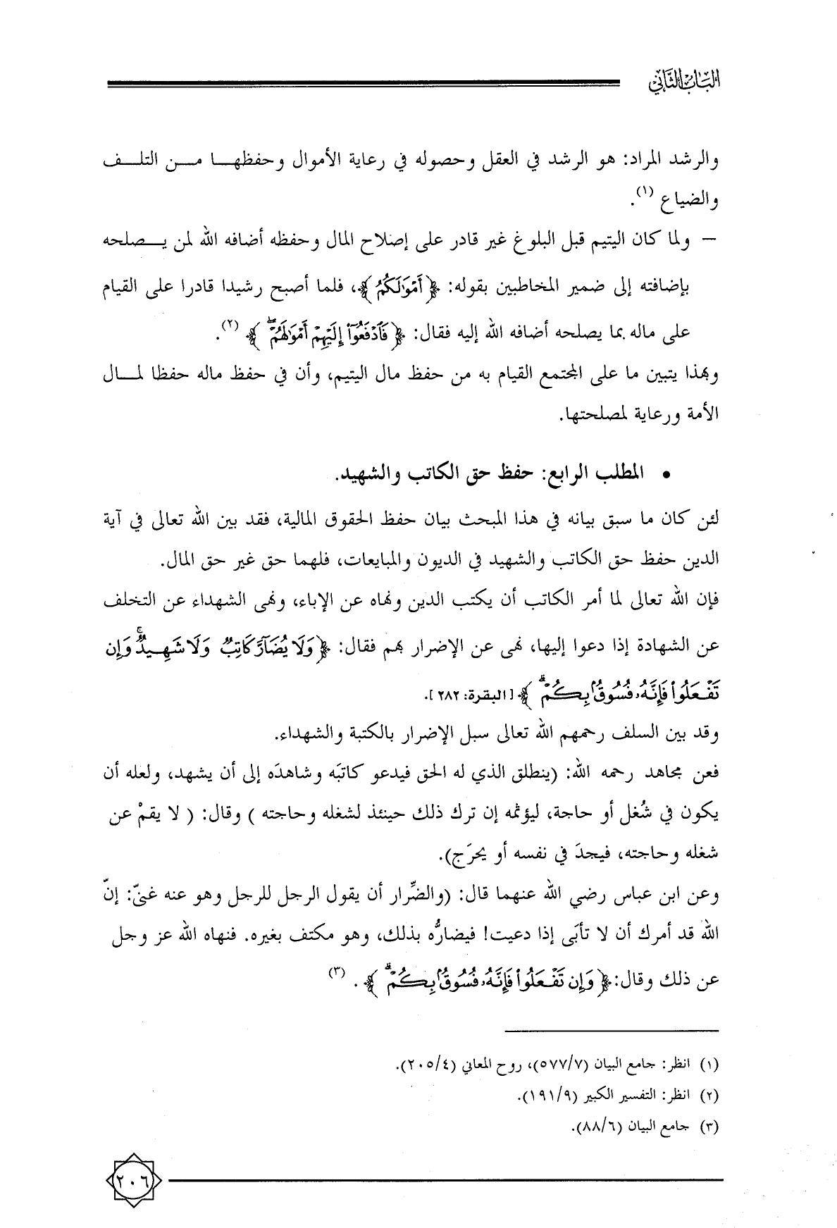 فإن الله تعالى لما أمر الكاتب أن يكتب الدين ونهاه عن الإباء, ونهى الشهداء عن التخلف عن الشهادة إذا دعوا إليها, نهى عن الإضرار بهم فقال: {وَلَا يُضَارَّ كَاتِبٌ وَلَا شَهِيدٌ وَإِنْ تَفْعَلُوا فَإِنَّهُ فُسُوقٌ بِكُمْ} [البقرة: ٢٨٢].