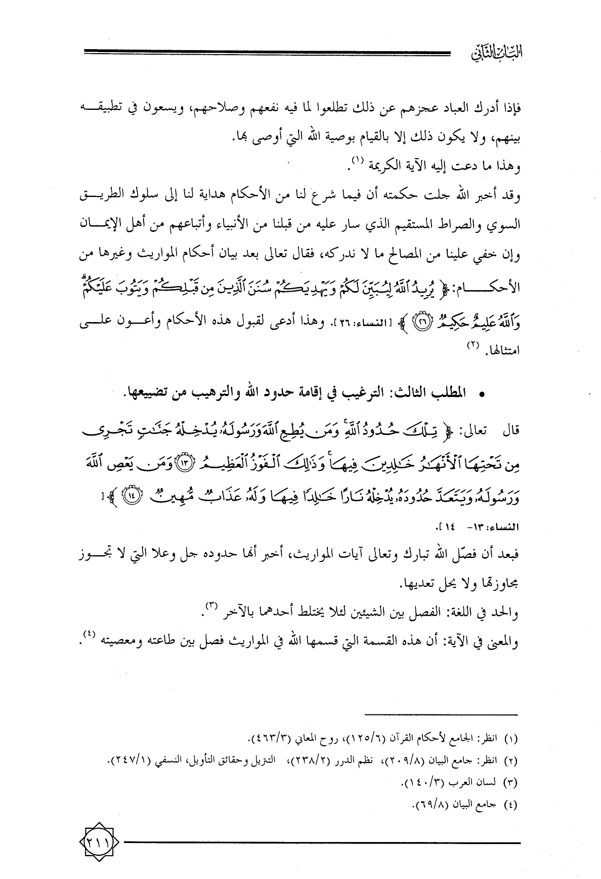 • المطلب الثالث: الترغيب في إقامة حدود الله والترهيب من تضييعها.