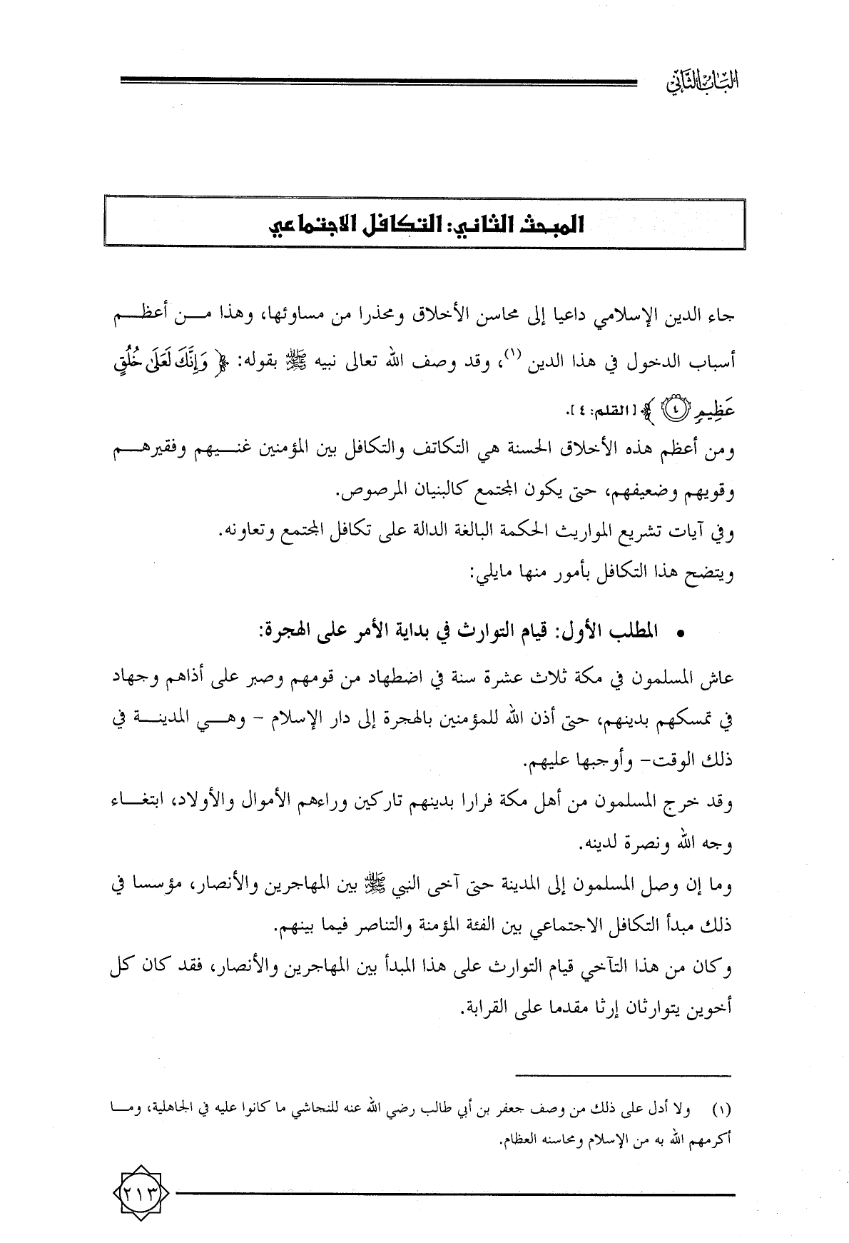 • المطلب الأول: قيام التوارث في بداية الأمر على الهجرة: