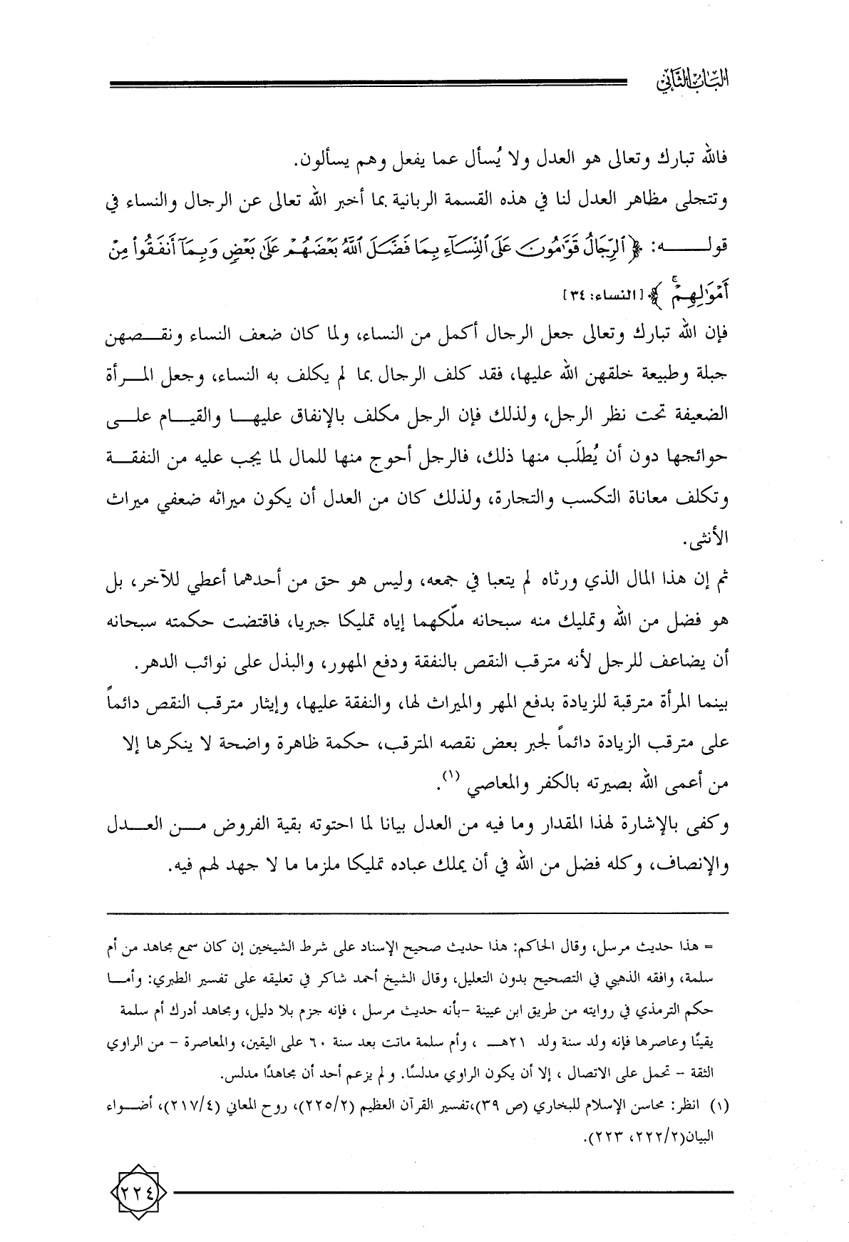 (¬١) انظر: محاسن الإسلام للبخاري (ص ٣٩) ,تفسير القرآن العظيم (٢/ ٢٢٥) , روح المعاني (٤/ ٢١٧) , أضواء البيان (٢/ ٢٢٢, ٢٢٣).