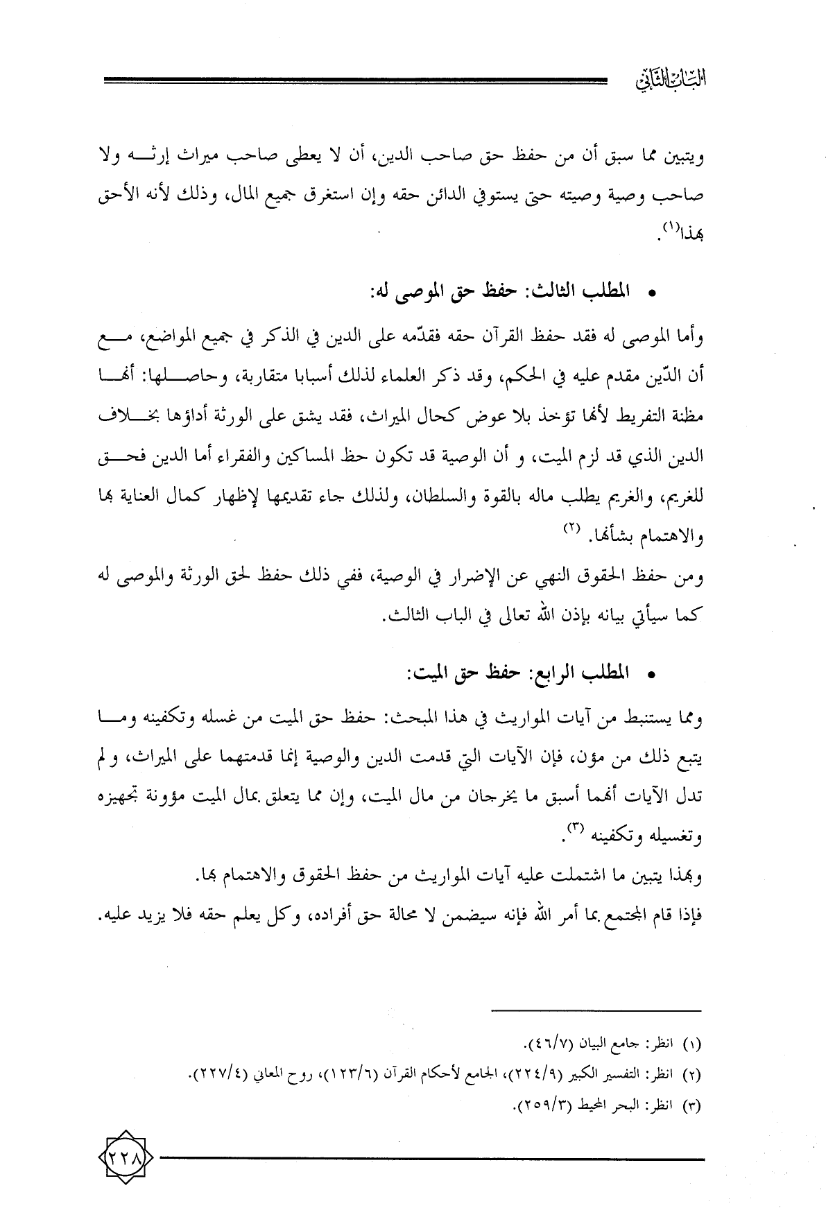 وبهذا يتبين ما اشتملت عليه آيات المواريث من حفظ الحقوق والاهتمام بها.