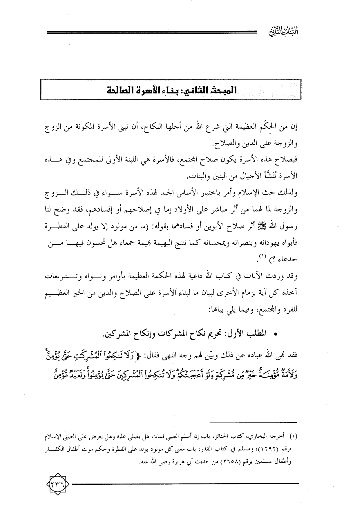 • المطلب الأول: تحريم نكاح المشركات وإنكاح المشركين.