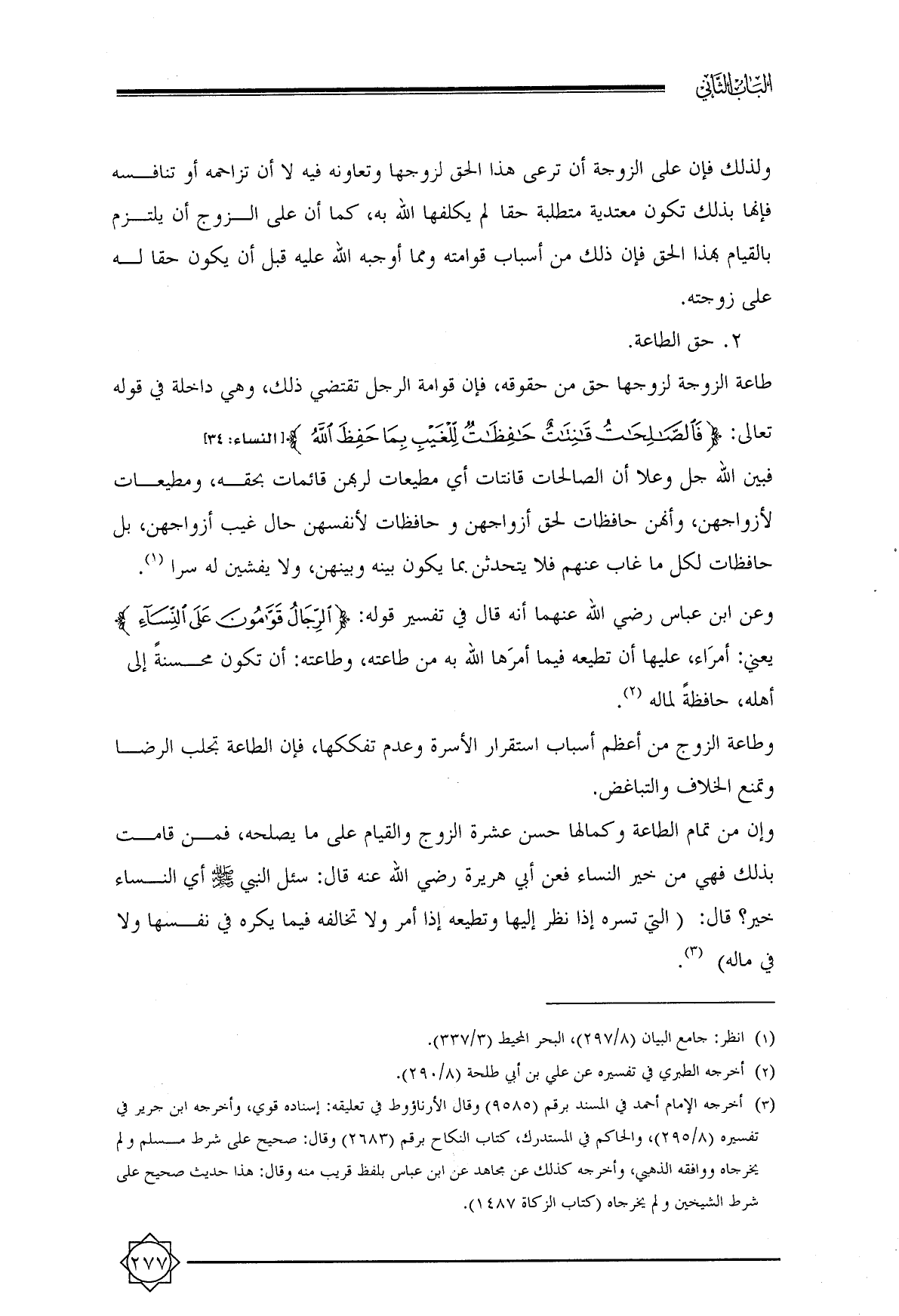(¬٣) أخرجه الإمام أحمد في المسند برقم (٩٥٨٥) وقال الأرناؤوط في تعليقه: إسناده قوي, وأخرجه ابن جرير في تفسيره (٨/ ٢٩٥) , والحاكم في المستدرك, كتاب النكاح برقم (٢٦٨٣) وقال: صحيح على شرط مسلم ولم يخرجاه ووافقه الذهبي, وأخرجه كذلك عن مجاهد عن ابن عباس بلفظ قريب منه وقال: هذا حديث صحيح على شرط الشيخين ولم يخرجاه (كتاب الزكاة ١٤٨٧).