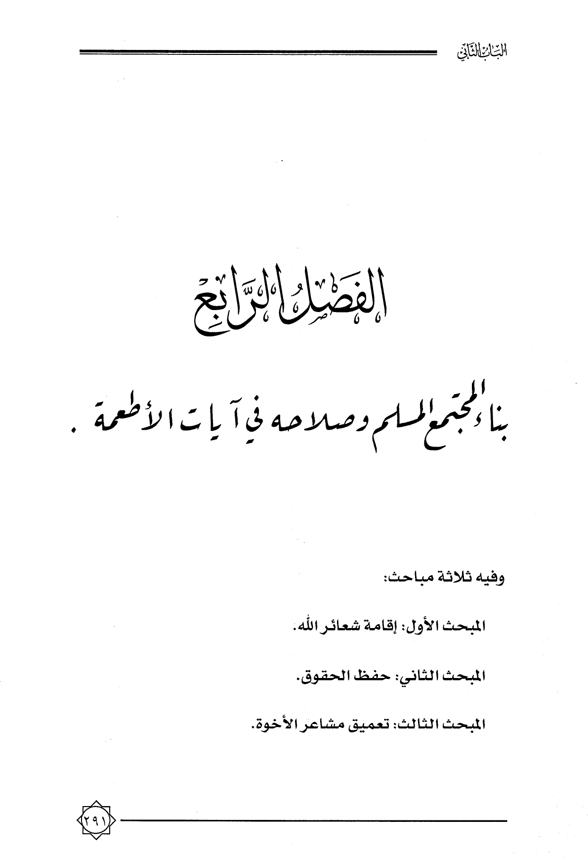 الفصل الرابع: بناء المجتمع المسلم وصلاحه في آيات الأطعمة