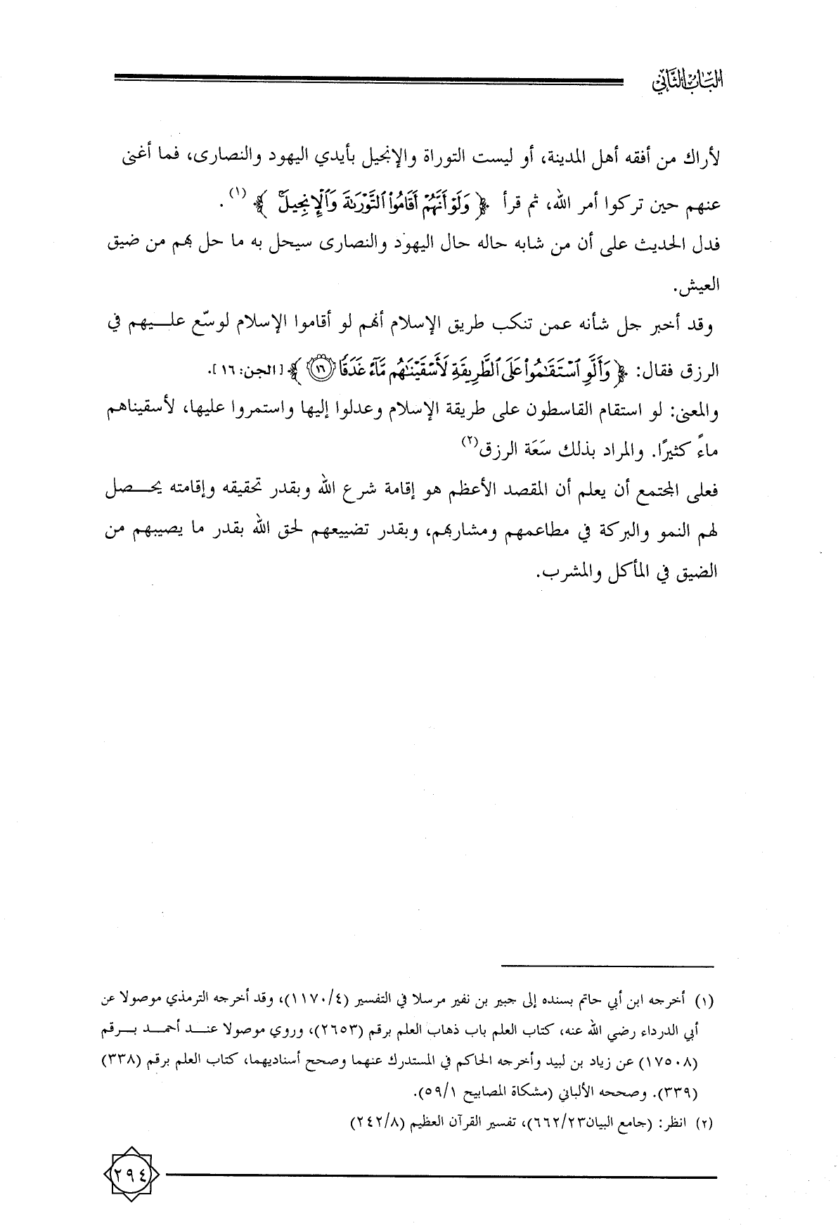 وقد أخبر جل شأنه عمن تنكب طريق الإسلام أنهم لو أقاموا الإسلام لوسّع عليهم في الرزق فقال: {وَأَلَّوِ اسْتَقَامُوا عَلَى الطَّرِيقَةِ لَأَسْقَيْنَاهُمْ مَاءً غَدَقًا (١٦)} [الجن: ١٦].