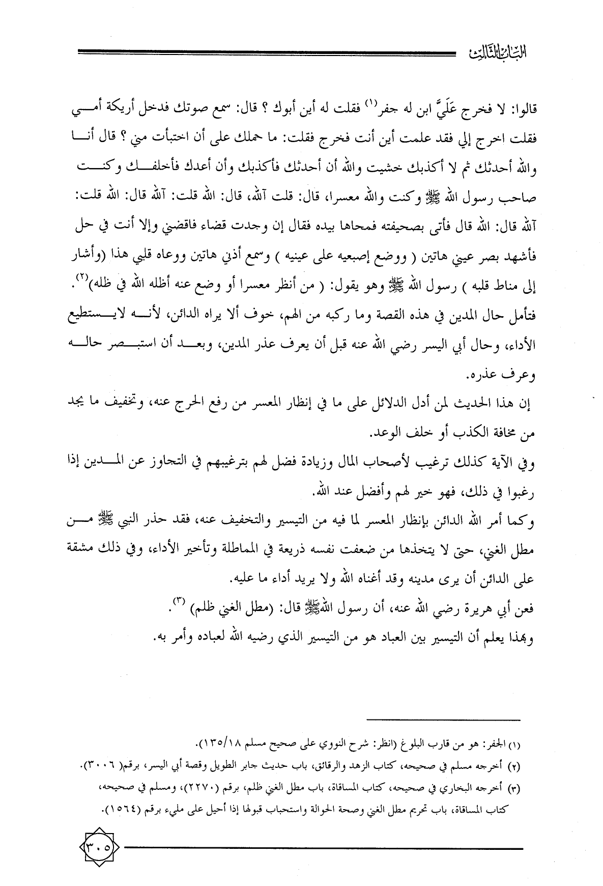 (¬٢) أخرجه مسلم في صحيحه, كتاب الزهد والرقائق, باب حديث جابر الطويل وقصة أبي اليسر, برقم (٣٠٠٦).