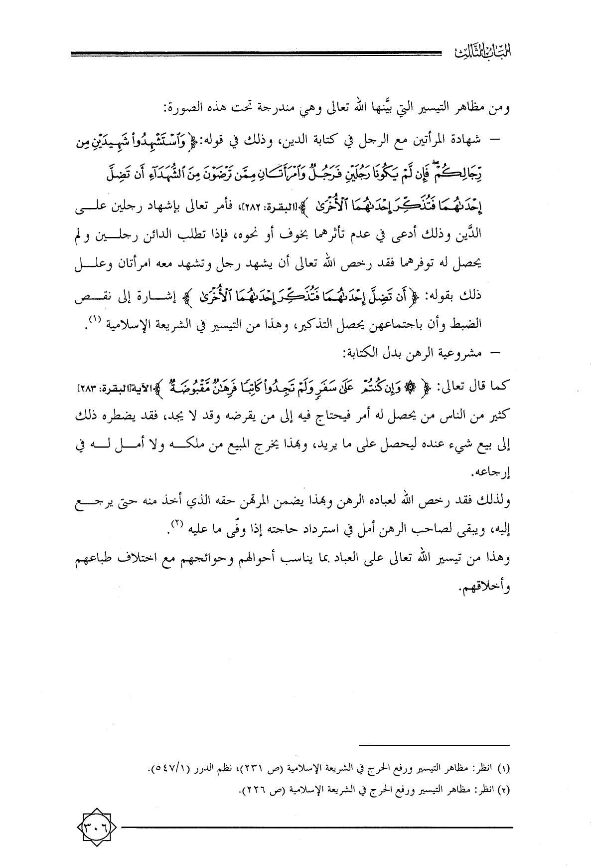 (¬٢) انظر: مظاهر التيسير ورفع الحرج في الشريعة الإسلامية (ص ٢٢٦).