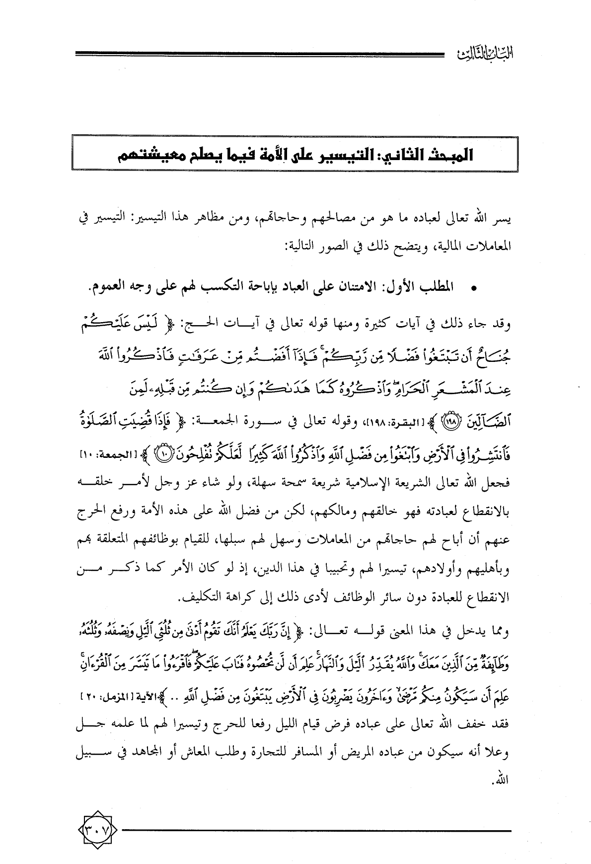المبحث الثاني: التيسير على الأمة فيما يصلح معيشتهم