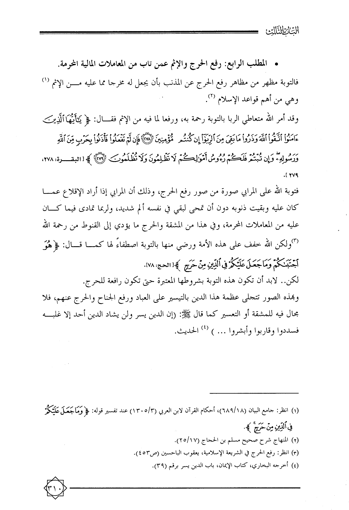 • المطلب الرابع: رفع الحرج والإثم عمن تاب من المعاملات المالية المحرمة.