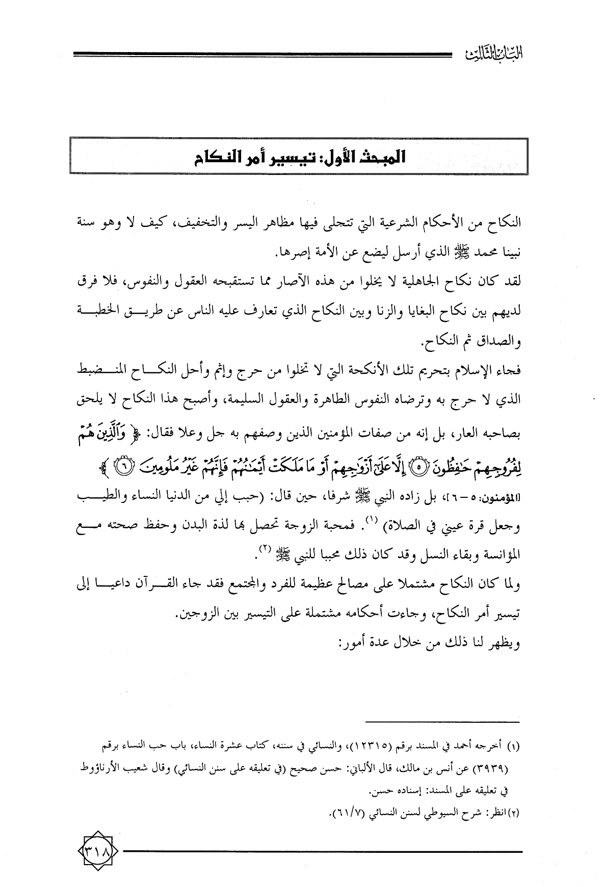 المبحث الأول: تيسير أمر النكاح