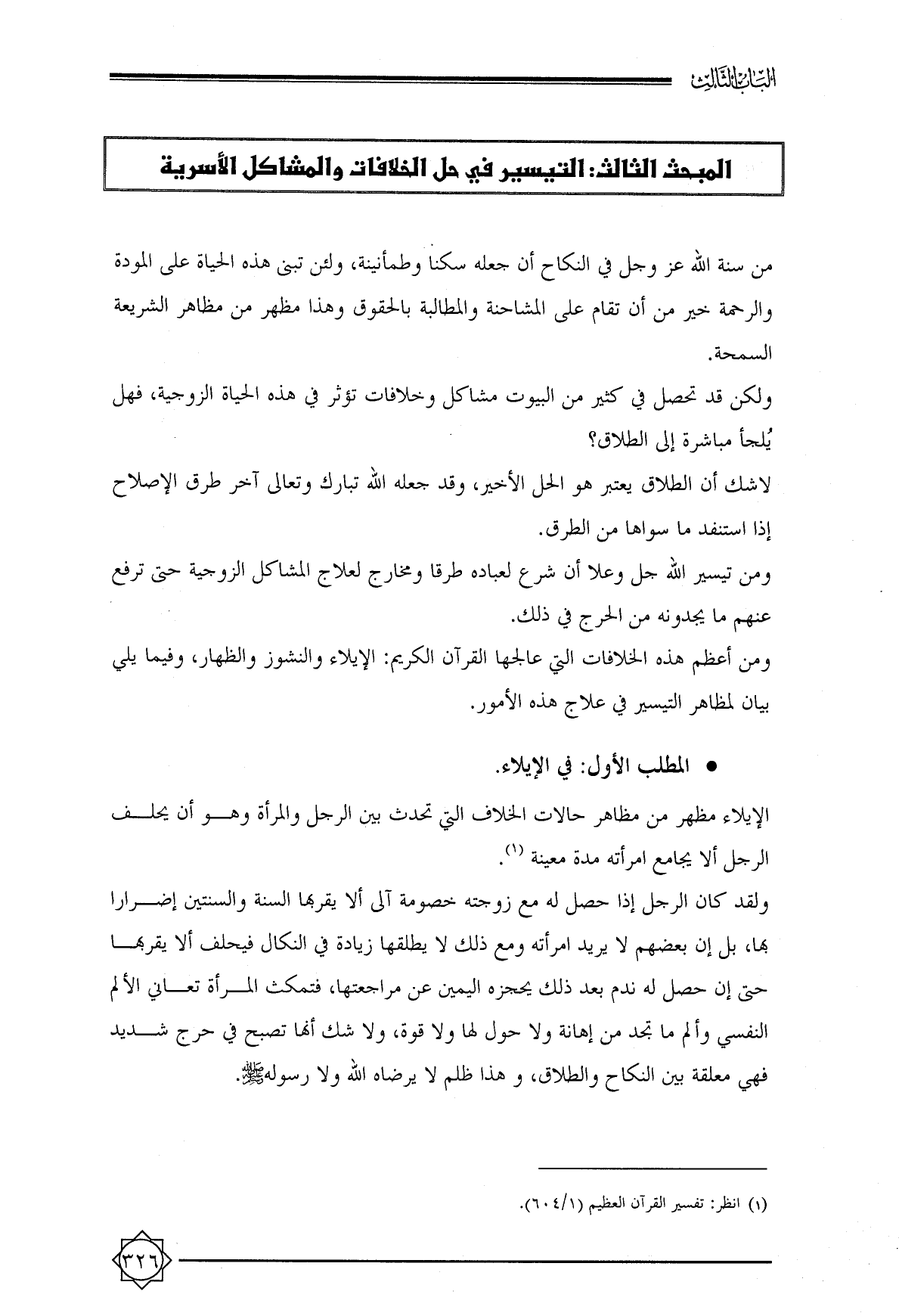 المبحث الثالث: التيسير في حل الخلافات والمشاكل الأسرية