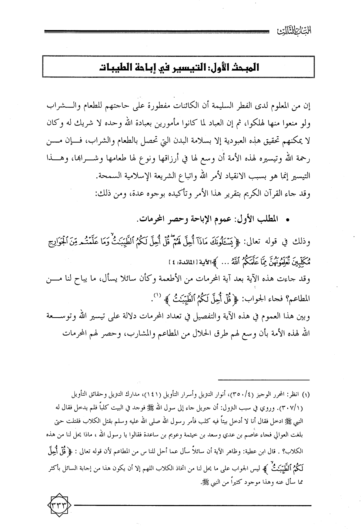 • المطلب الأول: عموم الإباحة وحصر المحرمات.