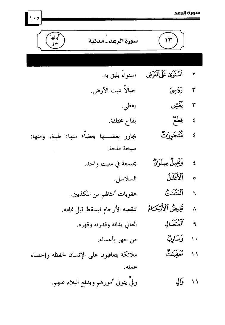 ترتيبها 13 ... سُورَةُ الرَّعْدِ ... آياتها 43 ... مدنية