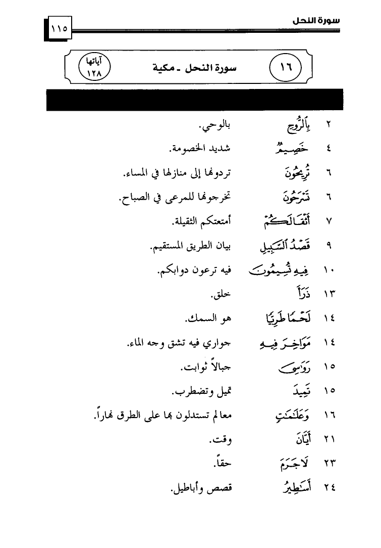 ترتيبها 16 ... سُورَةُ النَّحْلِ ... آياتها 128 ... مكية
