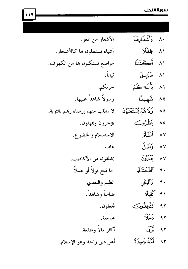 (92) ... {أَنكَاثًا} ... أَنْقَاضًا بَعْدَ فَتْلِهَا.