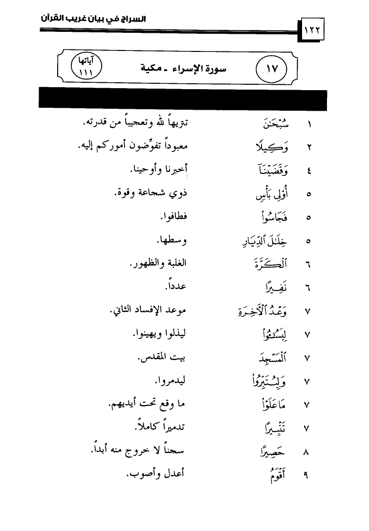ترتيبها 17 ... سُورَةُ الإِسْرَاءِ ... آياتها 111 ... مكية