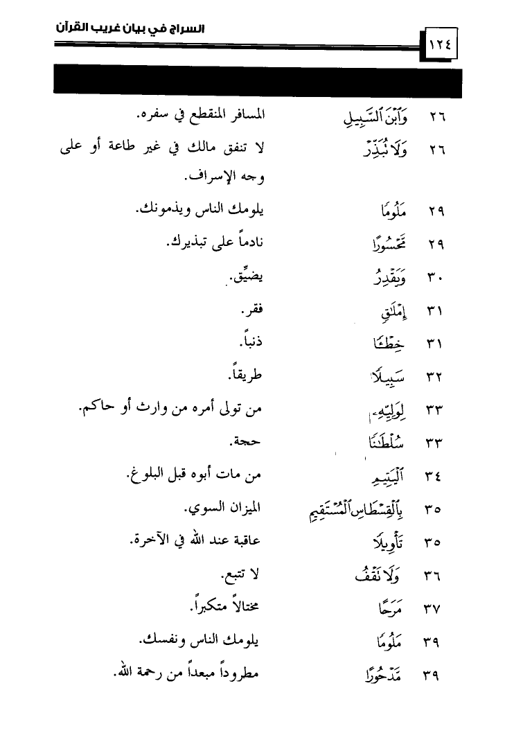 (26) ... {وَابْنَ السَّبِيلِ} ... المُسَافِرَ، المُنْقَطِعَ فيِ سَفَرِهِ.