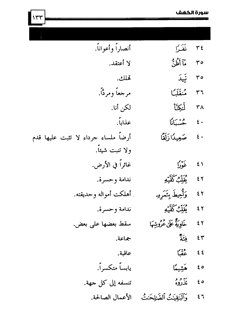 (40) ... {صَعِيدًا زَلَقًا} ... أَرْضًا مَلْسَاءَ جَرْدَاءَ لَا تَثْبُتُ عَلَيْهَا قَدَمٌ، وَلَا تُنْبِتُ شَيْئًا.