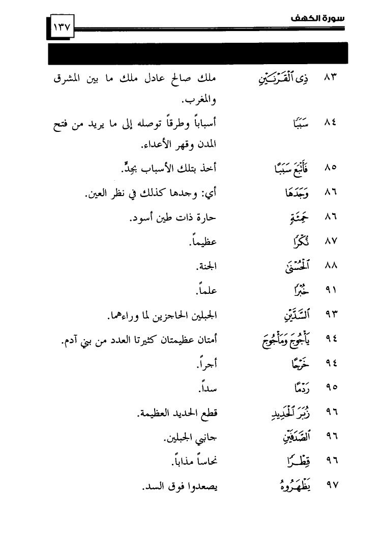(83) ... {ذِي الْقَرْنَيْنِ} ... مَلِكٍ صَالِحٍ عَادِلٍ مَلَكَ مَا بَيْنَ المَشْرِقِ وَالمَغْرِبِ.