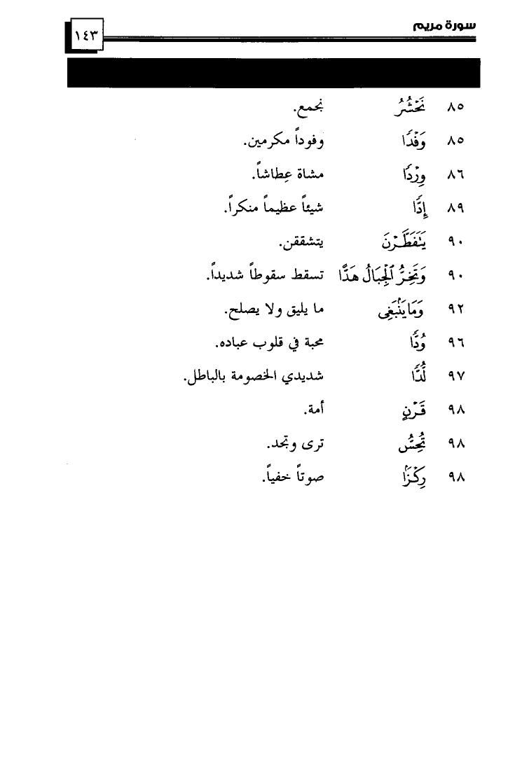 (85) ... {وَفْدًا} ... وُفُودًا مُكْرَمِينَ عَلَى الرِّكَابِ وَالرَّوَاحِلِ.