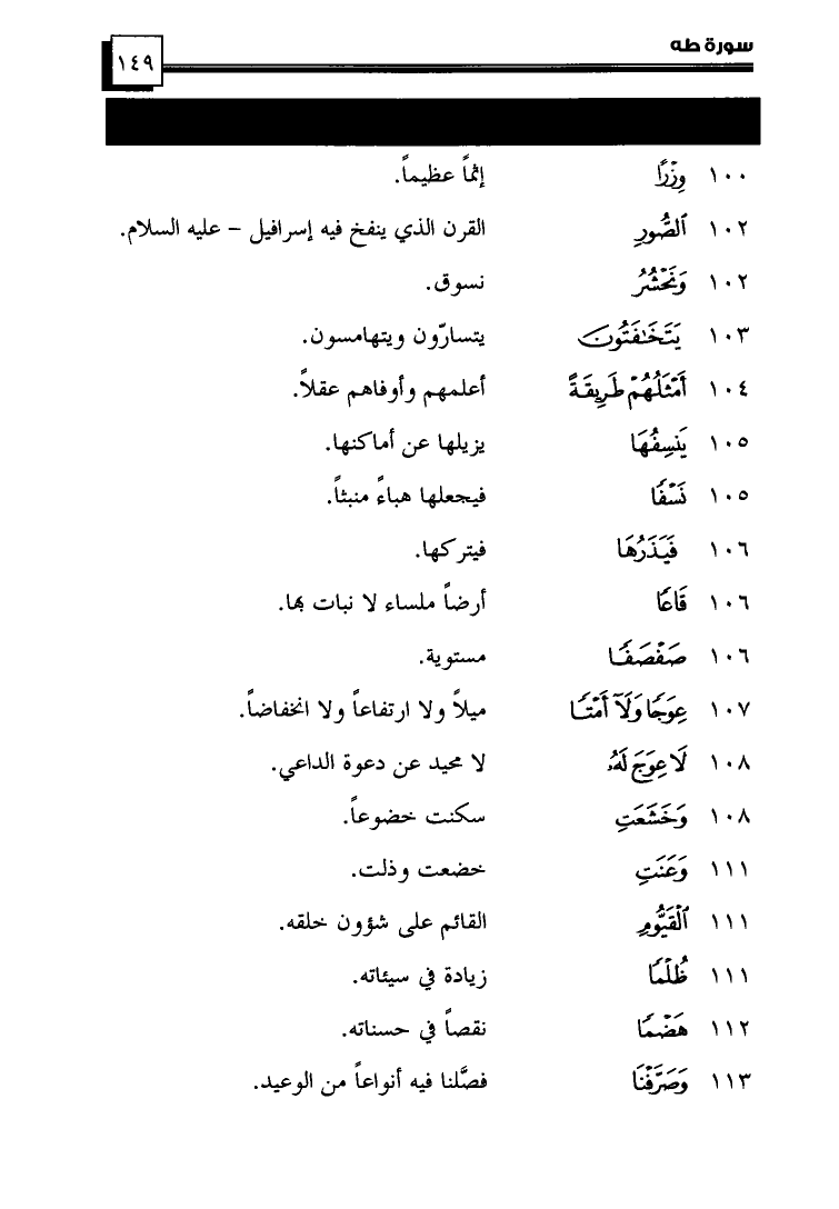 (106) ... {صَفْصَفًا} ... مُسْتَوِيَةً.