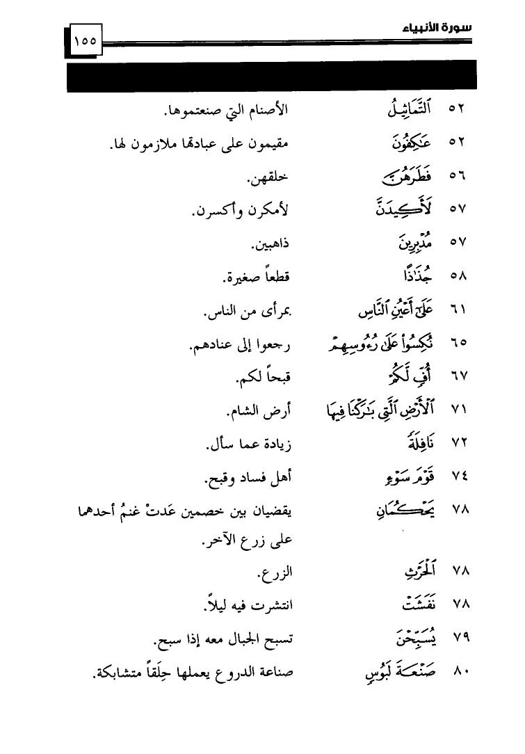 (52) ... {التَّمَاثِيلُ} ... الأَصْنَامُ الَّتِي صَنَعْتُمُوهَا.