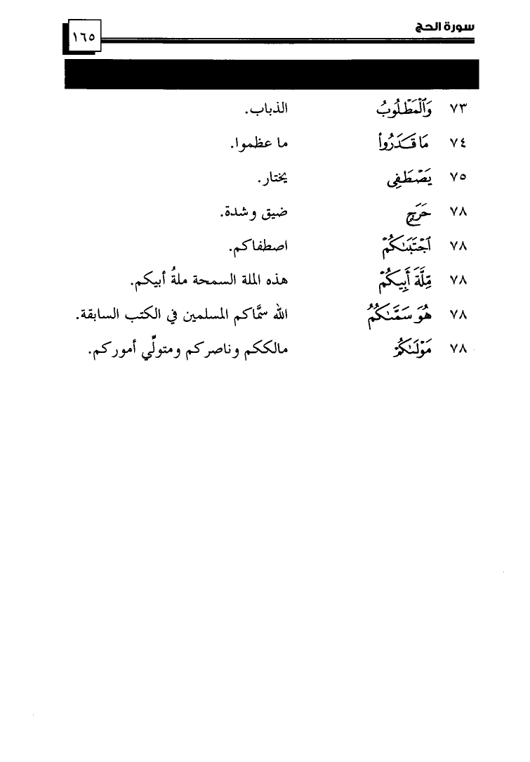 (78) ... {حَرَجٍ} ... ضِيقٍ، وَشِدَّةٍ.